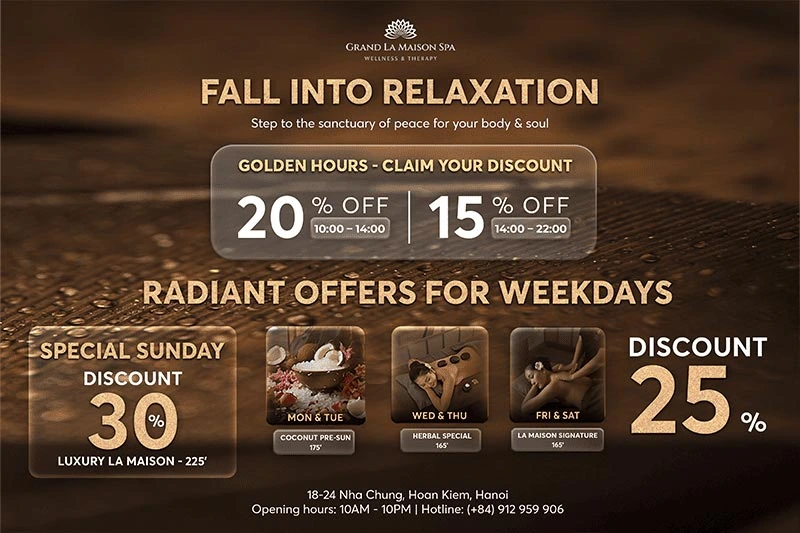 Amidst the hustle and bustle of Hanoi city, a peaceful paradise is waiting for you. At GRAND La Maison Spa, we create a tranquill space, bringing a different side of Vietnam where you will nourish your body and feel more relaxed in than ever.